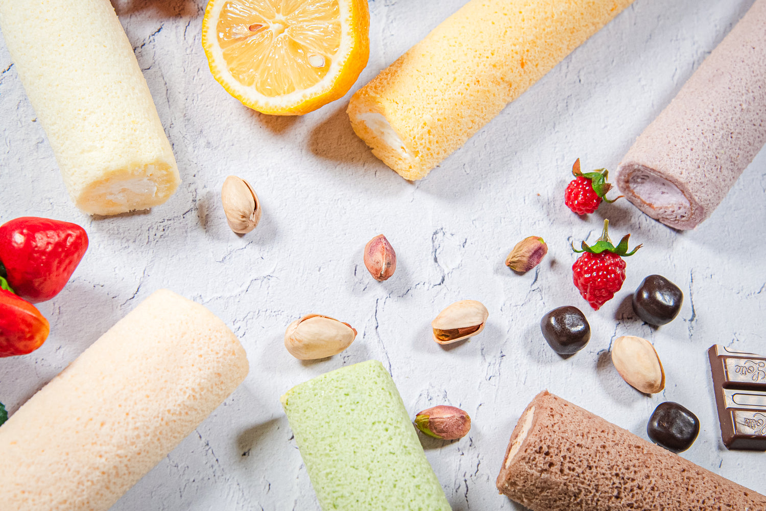 片手で楽しむ贅沢スイーツ、6種のPicoロール!(プレーン、いちご、レモン、ピスタチオ、ブルーベリー、チョコ)